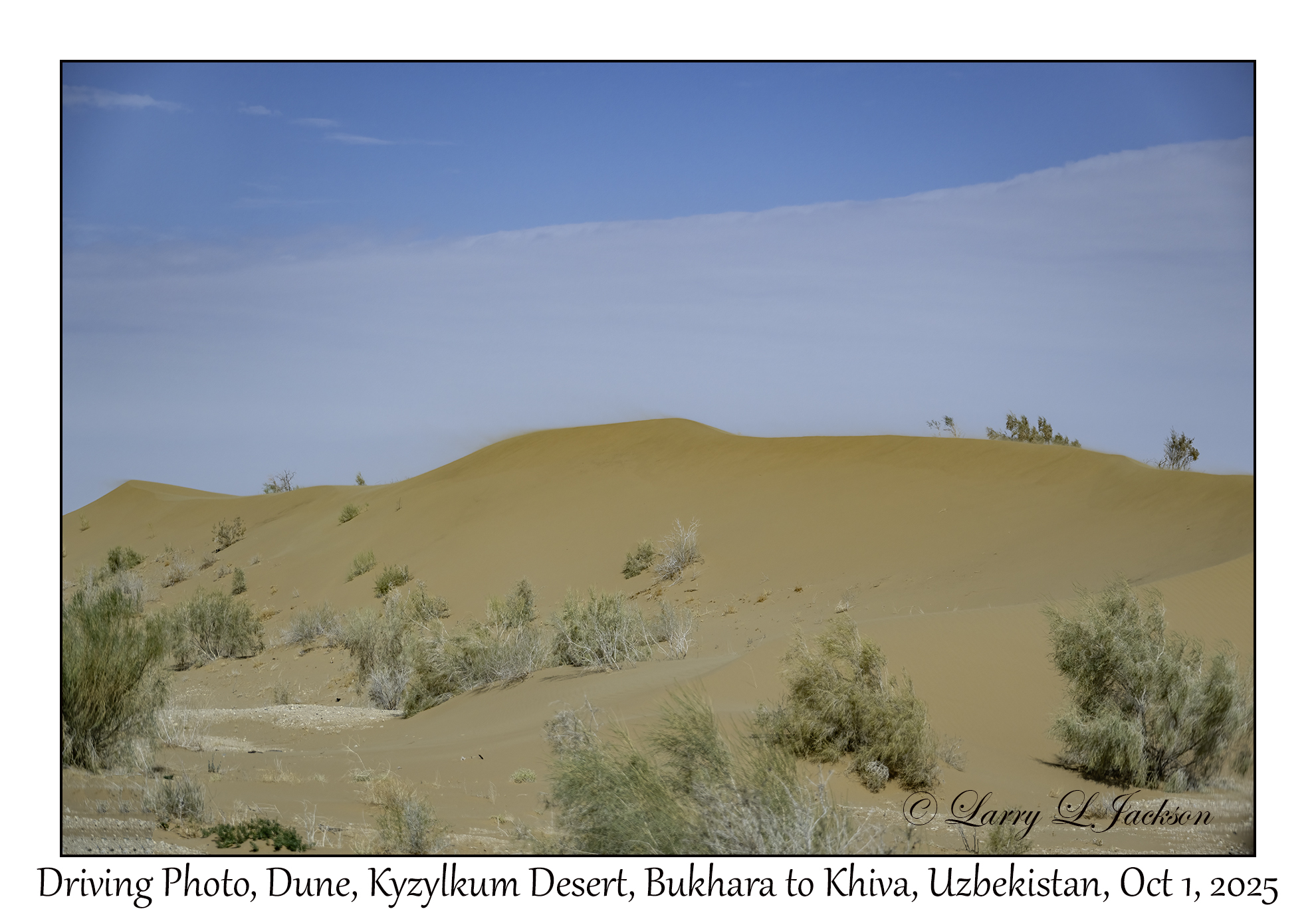 2025-10-01#2862 Driving Photo, Dune, Kyzylkum Desert, Bukhara to Khiva, UzbekistanLarry L. Jackson