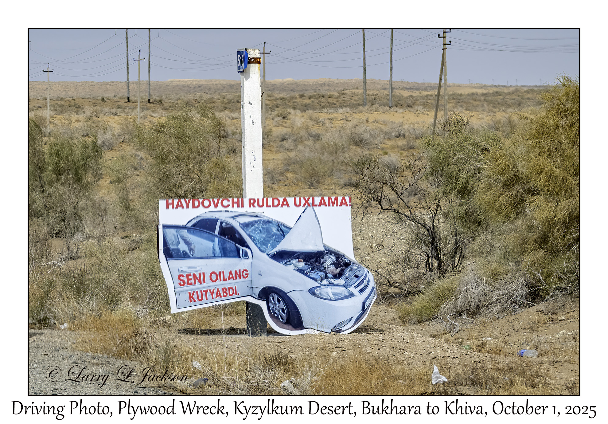 2025-10-01#2850 Driving Photo, Kyzylkum Desert, Bukhara to Khiva, UzbekistanLarry L. Jackson