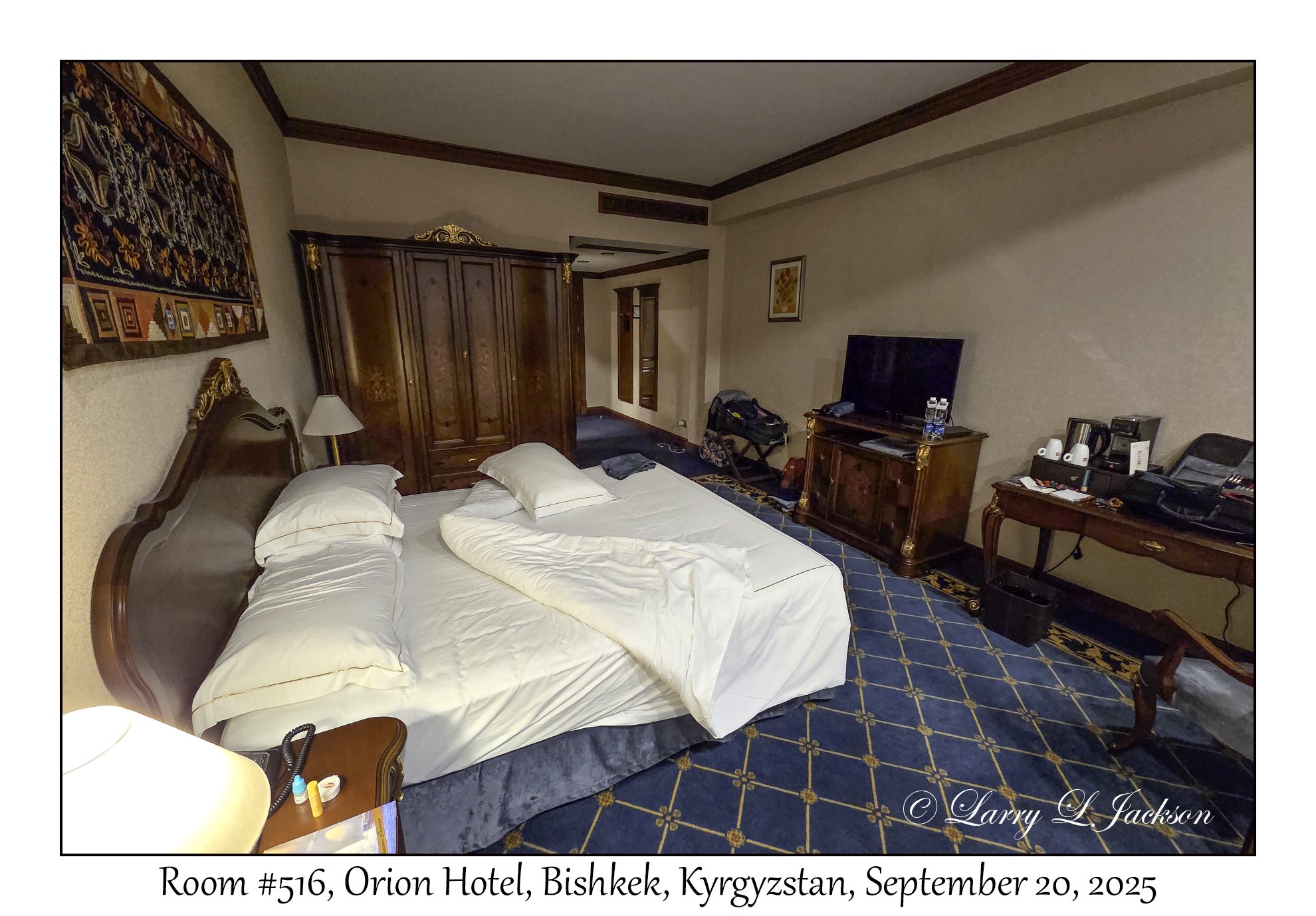 Room #516Nice, large room.Orion Hotel, Bishkek, Kyrgyzstan, September 20, 20252025-09-20#3302Larry L. Jackson