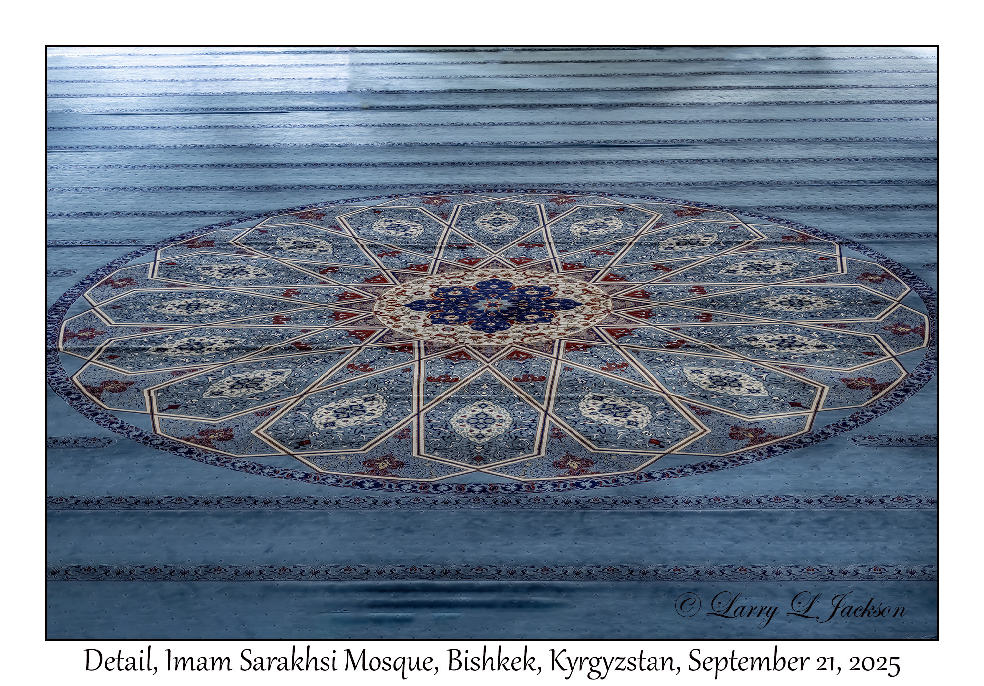 DetailIn the center of the musalla.Imam Sarakhsi Mosque, Bishkek, Kyrgyzstan, September 21, 20252025-09-21#0103Larry L. Jackson