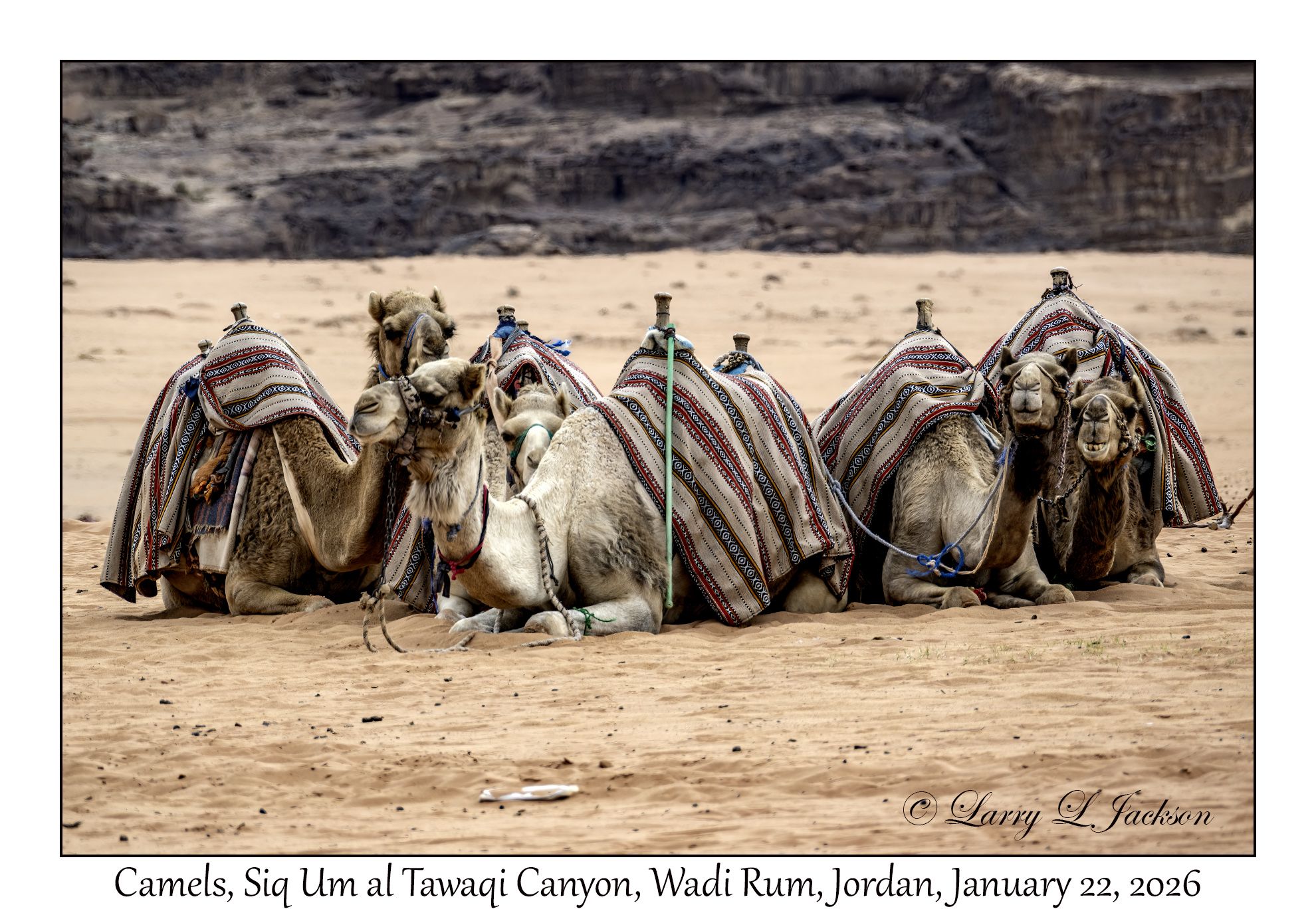 2026-01-22#3806 Camel, Siq Um al Tawaqi Canyon, Wadi Rum, JordanLarry L. Jackson