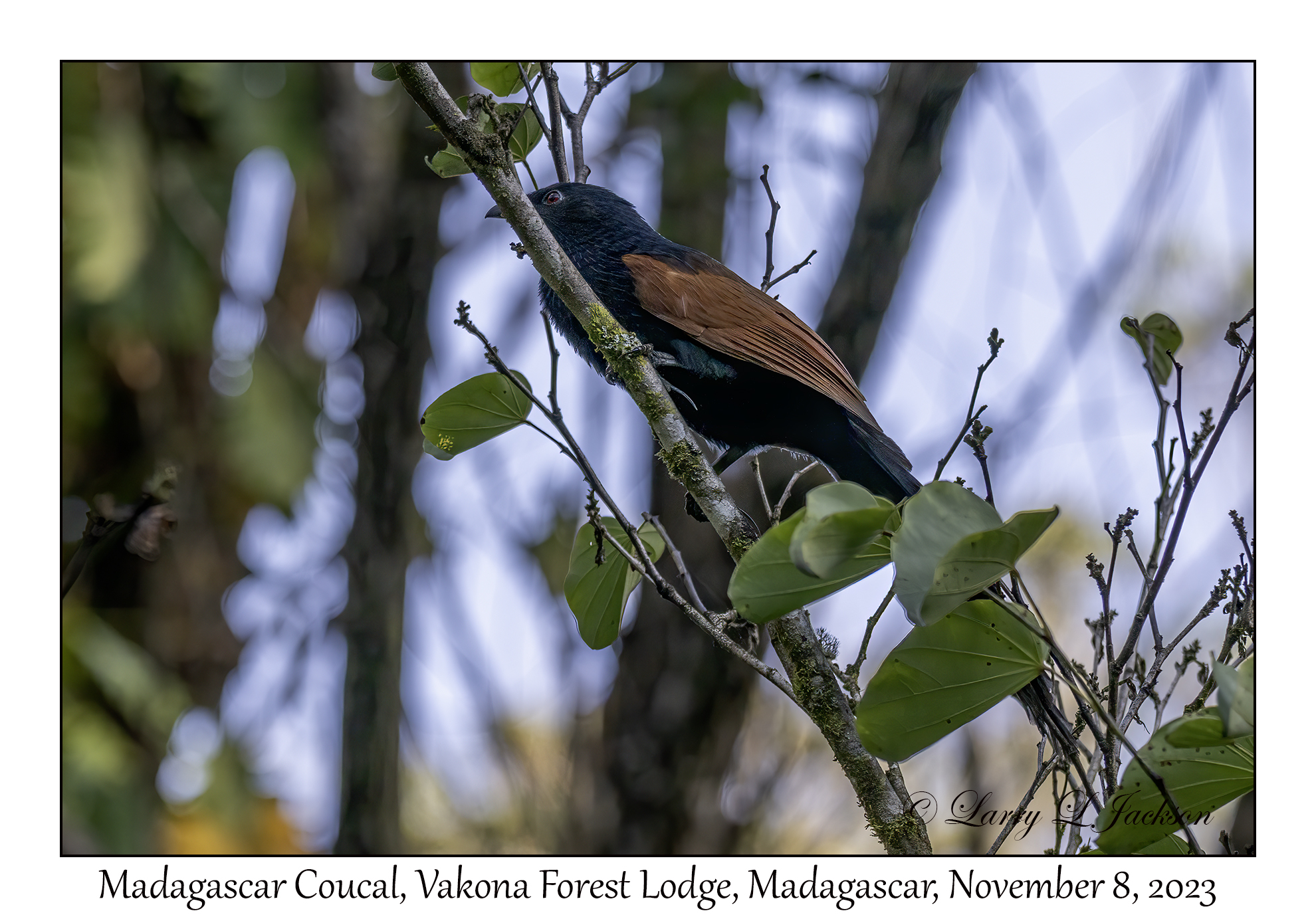 Madagascar CoucalCentropus toulou - I saw a few, but all were too busy and wary.Vakona Forest Lodge, Andasibe, Madagascar, November 8, 20232023-11-08#1042Larry L. Jackson
