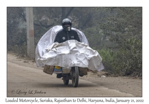 Loaded MotorcycleThe cover is likely to protect transported items free of dust.Sariska, Rajasthan to Delhi, Haryana, India, January 21, 20222022-01-21#2332Larry L. Jackson