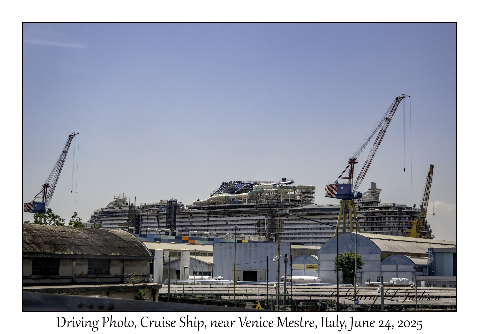 Cruise ShipDriving Photo - it appears that work is being performed on the big ship.near Venice Mestre, Italy, June 24, 20252025-06-24#7537Larry L. Jackson