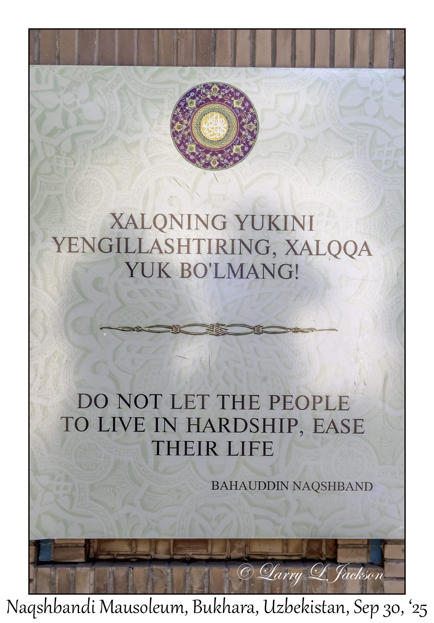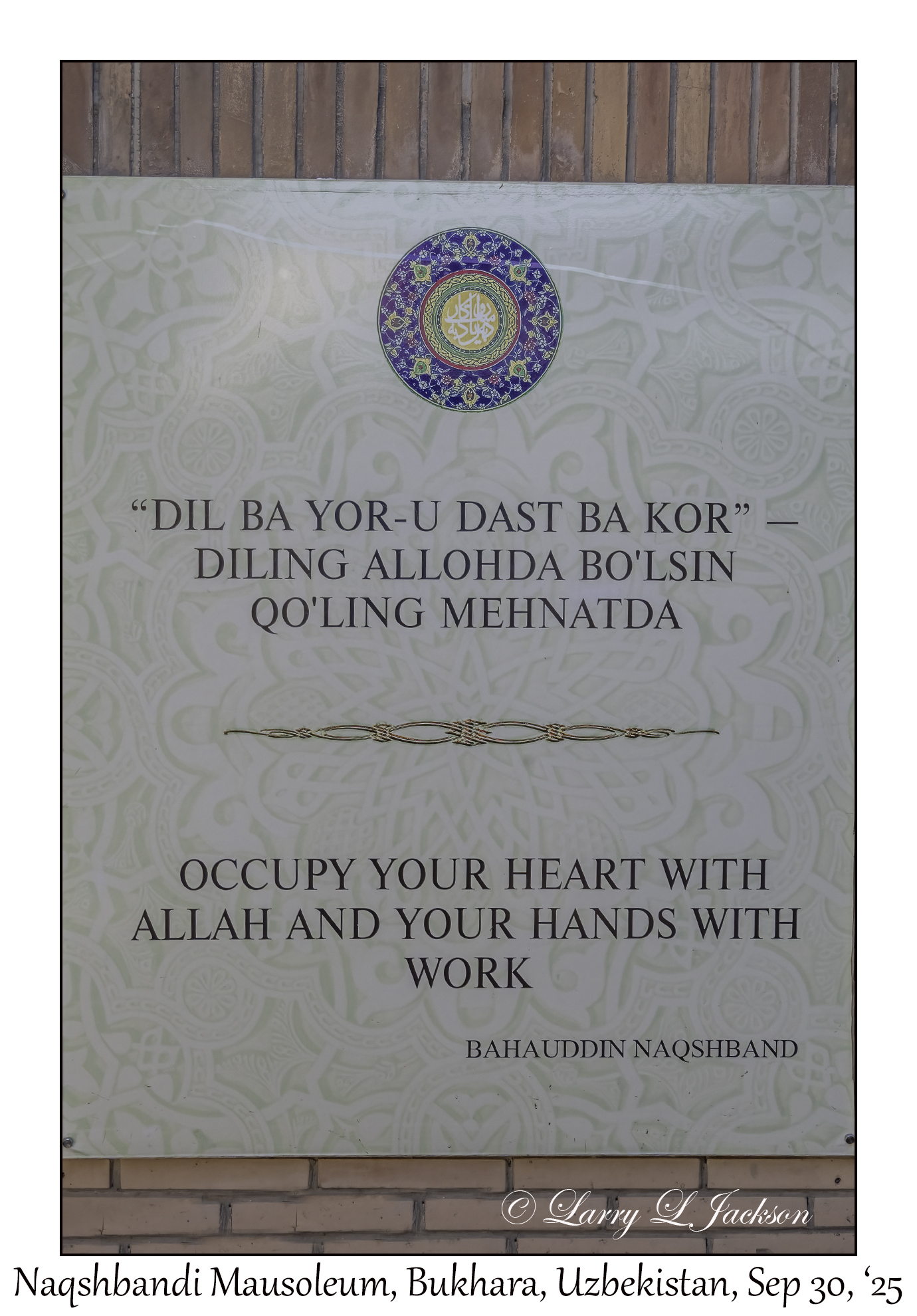 2025-09-30#2598 Quote, Naqshbandi Mausoleum, Bukhara, UzbekistanLarry L. Jackson