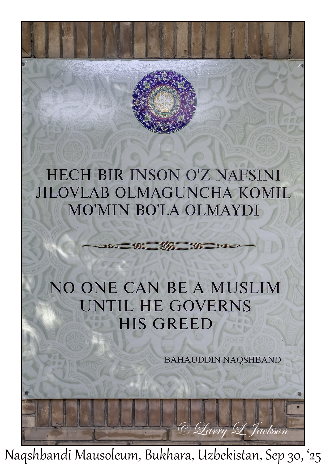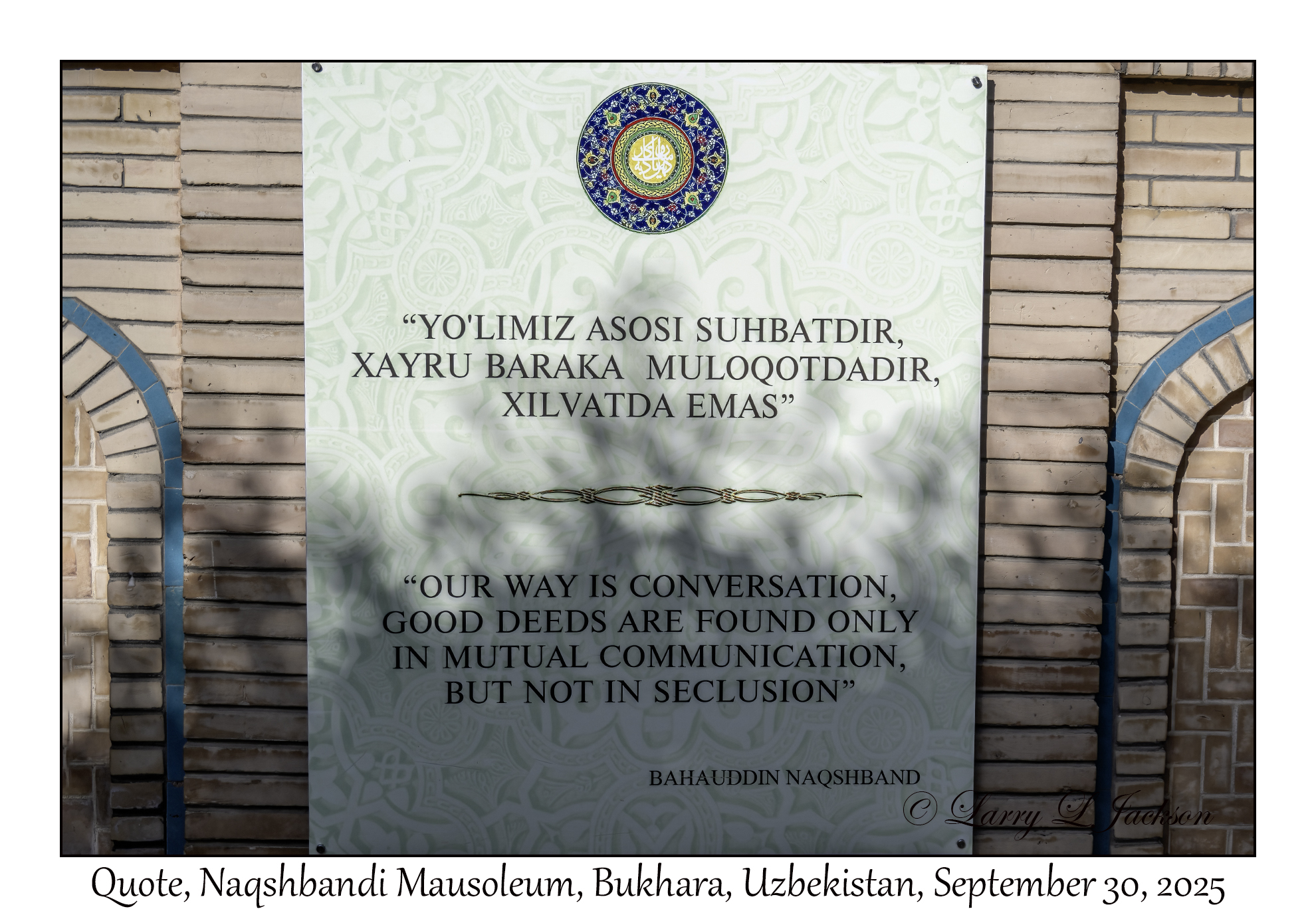 2025-09-30#2600 Quote, Naqshbandi Mausoleum, Bukhara, UzbekistanLarry L. Jackson