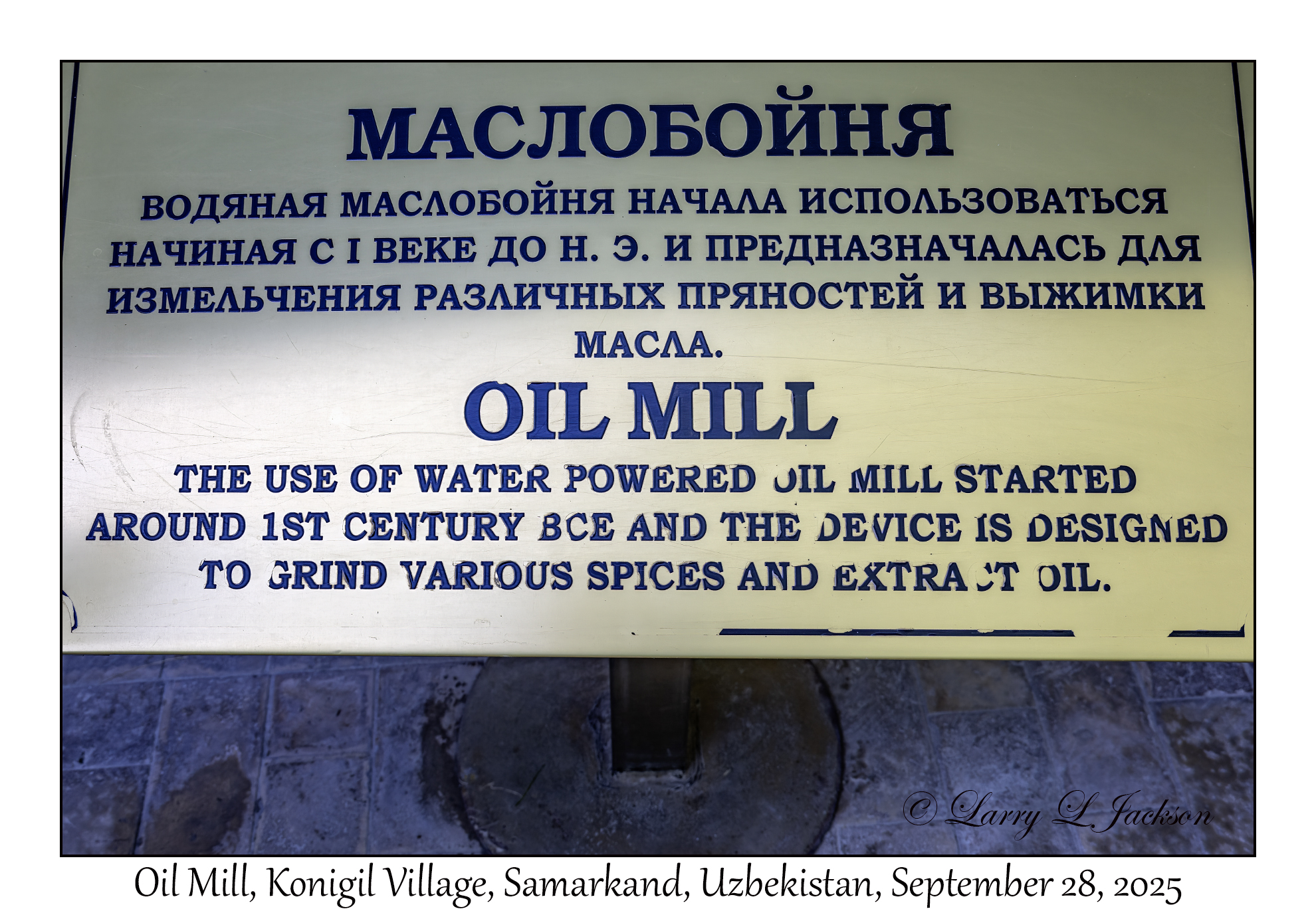 2025-09-28#2323 Oil Mill, Konigil Village, Samarkand, UzbekistanLarry L. Jackson